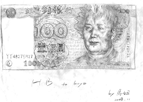 後來在高三的時候二寶第一次製作假幣畫了毛爺爺(送給水寶做成人禮物(順便一提水寶給二寶的成人禮物是上百部H動畫和毛片的下載地址)