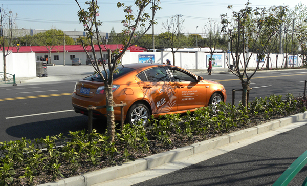 往园区走的时候看到了一辆很闪的眉毛馆痛车~~XD(误