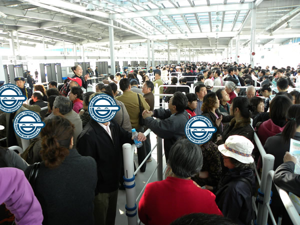 我原本以为自己来得很早…………结果安检处已经成了这样—— =_______,=||||||||