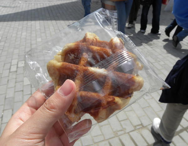 在比利时馆门口买了块比利时华芙饼……20块人民币一块哦QAQ (不过换算成欧元也就2欧元一块……这样一想就觉得它不是很贵了?!XD(不要自欺欺人一样地自我安慰啊喂!